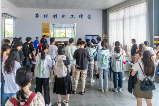 來到公司勞模創新工作室,安徽江南泵閥集團有限公司工程師、全國五一勞動獎章獲得者邱軍強帶領大學生們一同觀看其個人成長紀錄片并分享了中國共產主義青年團第十九次全國代表大會報告學習心得。