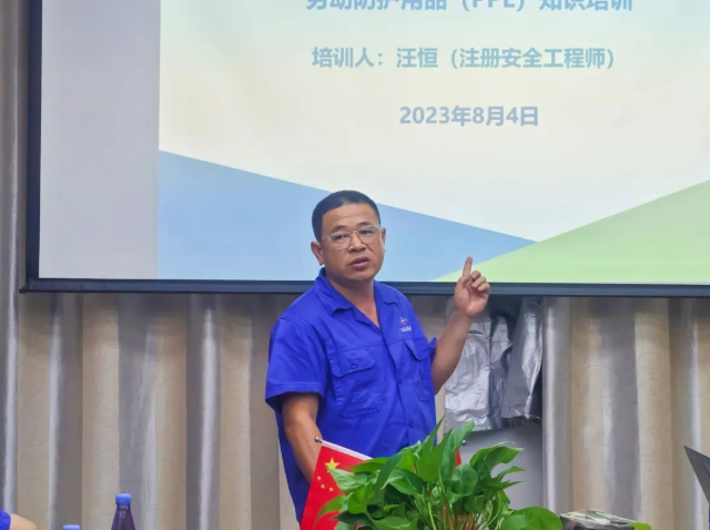 為進一步加強員工正確使用勞動防護用品的能力,提高自我保護的意識,8月4日,安徽江南泵閥集團有限公司與涇縣新隆機械廠聯合組織開展勞動防護用品(PPE)知識培訓。培訓由江南泵閥安環科科長趙文杰主持。