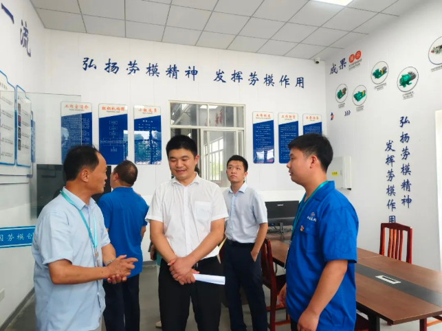 期間調研組與公司工程師、全國五一勞動獎章獲得者邱軍強進行交談,參觀了公司勞模創新工作室,對工作室在深化校企合作方面的作用表示肯定。
