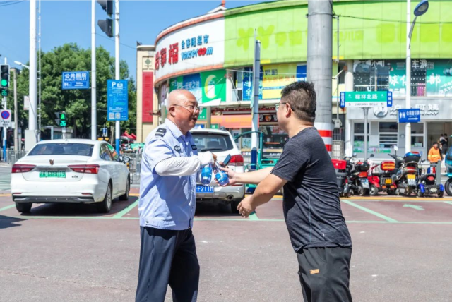 一瓶瓶愛心冰水 傳遞清涼正能量 讓奮戰在高溫下的戶外工作者 喝點冰涼爽口的飲品歇歇腳 感受這份清涼的關懷