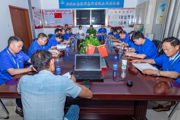 安徽江南泵閥集團有限公司董事長吳同茂、黨支部書記戴高巖、全體黨員、入黨積極分子及職工代表聆聽宣講。