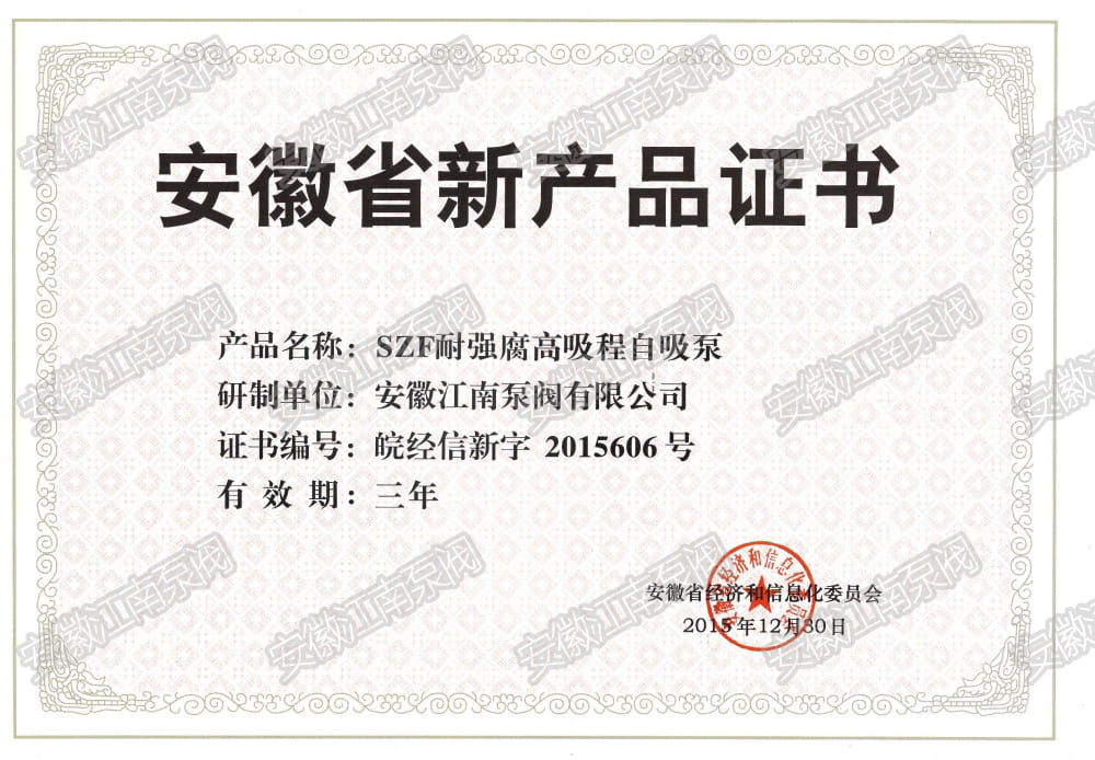 SZF耐強腐高吸程自吸泵產品證書  Hot!