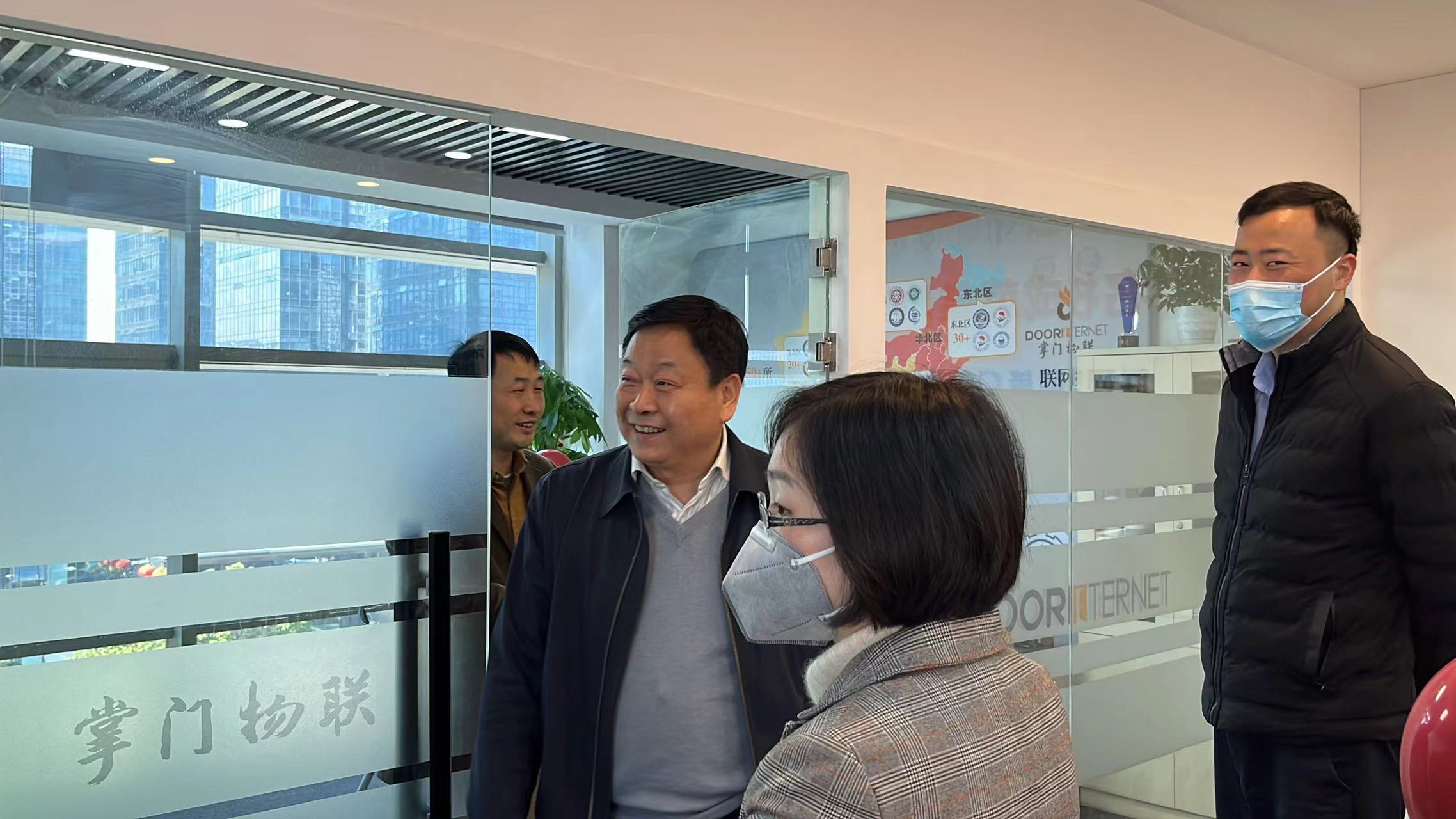 2022年1月12日,掌門物聯喬遷儀式圓滿落幕,正元智慧董事長陳堅、掌門董事蔡宇峰、雙旗總經理黃云峰、博太科副總經理吳皆、聯創總經理沈杰、英杰電子總經理趙文淵、西尚科技總經理廖海峰等出席典禮。