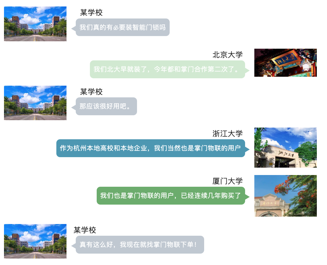 掌門物聯科技(杭州)股份有限公司專注于校園門聯網管理解決方案,產品已在包括北京大學、浙江大學、上海交大、廈門大學等超過550家學校得到應用。