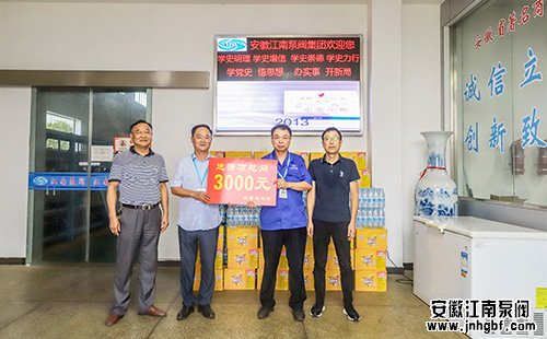 8月9日下午,縣政協副主席、縣總工會主席呂青年,縣總工會黨組書記、副主席李文勝,省總工會蹲點組組長胡興勝,蹲點組成員王慧慧一行,來到安徽江南泵閥集團有限公司開展“送清...